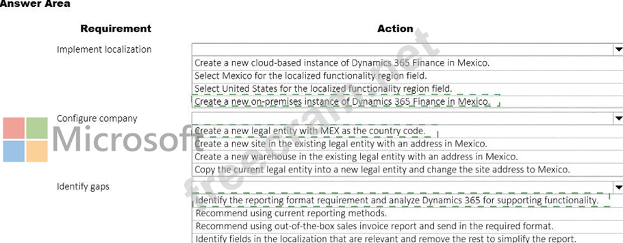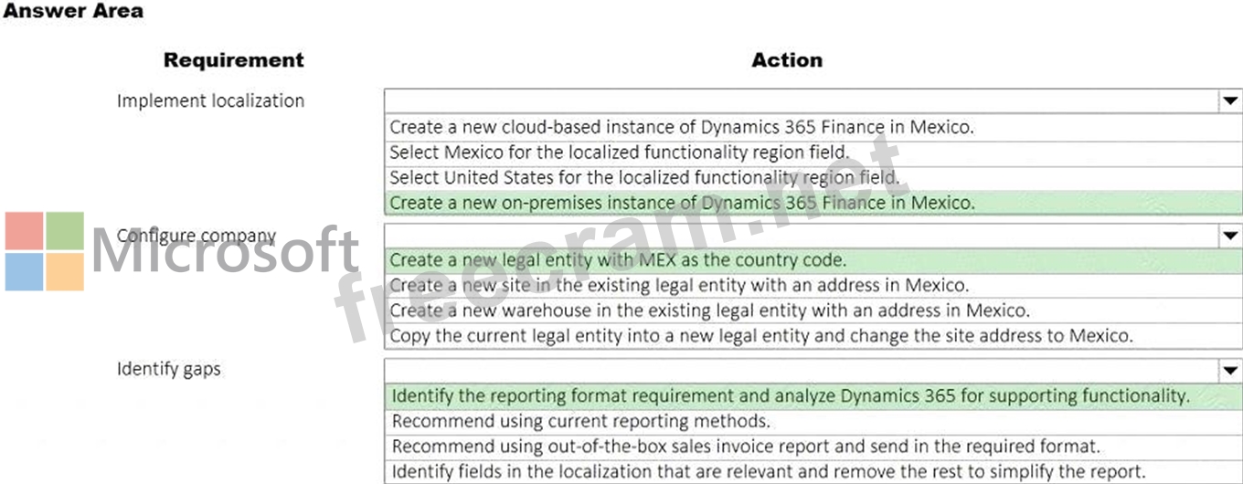 A United States-based company has a cloud-based Dynamics 365 Finance implementation. The company plans to open a new location in Mexico.