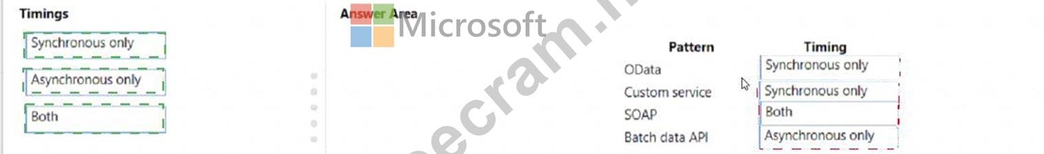 You need to recommend the correct timing for each integration pattern.