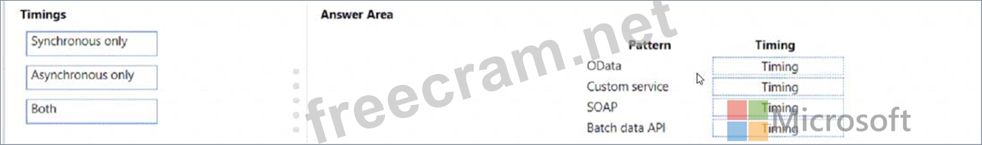 What should you recommend? To answer, drag the appropriate timings to the correct patterns. Each timing may be used once, more than once, or not at all. You may need to drag the split bar between panes or scroll to view content NOTE: Each correct selection is worth one point.