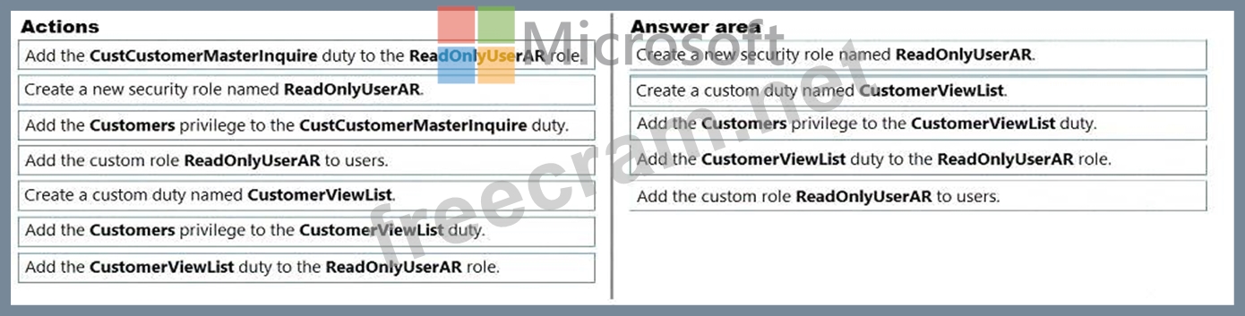 A client wants to create a custom view-only security role that allows users to view the customer list in the accounts receivable module. It must be accurately reported during a security audit.