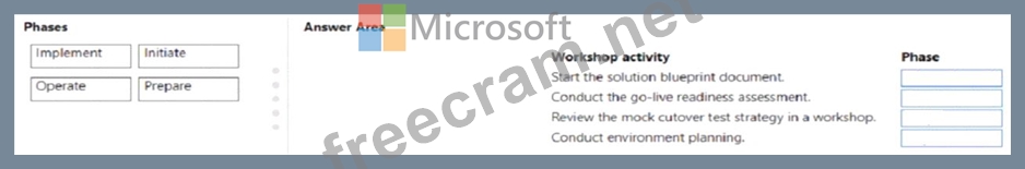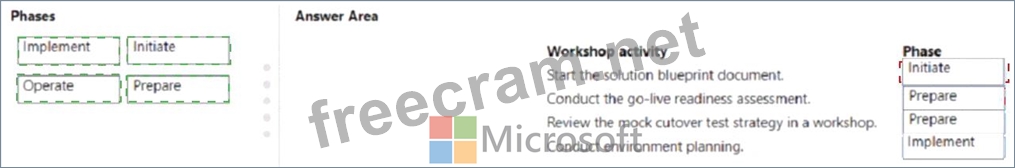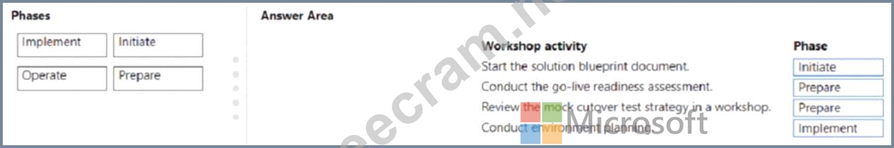 Which phases will include the workshop activities? To answer, drag the appropriate phases to the correct workshop activities. Each phase may be used once, more than once, or not at all. You may need to drag the split bar between panes or scroll to view content NOTE: Each correct selection is worth one point