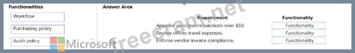 Question 87: A company is moving financial workloads to Dynamics 365 Fina...