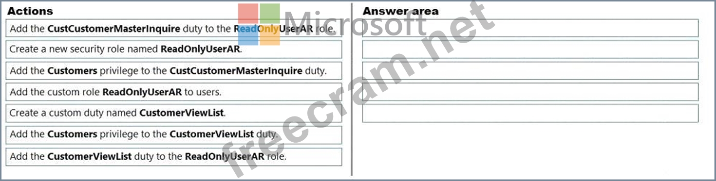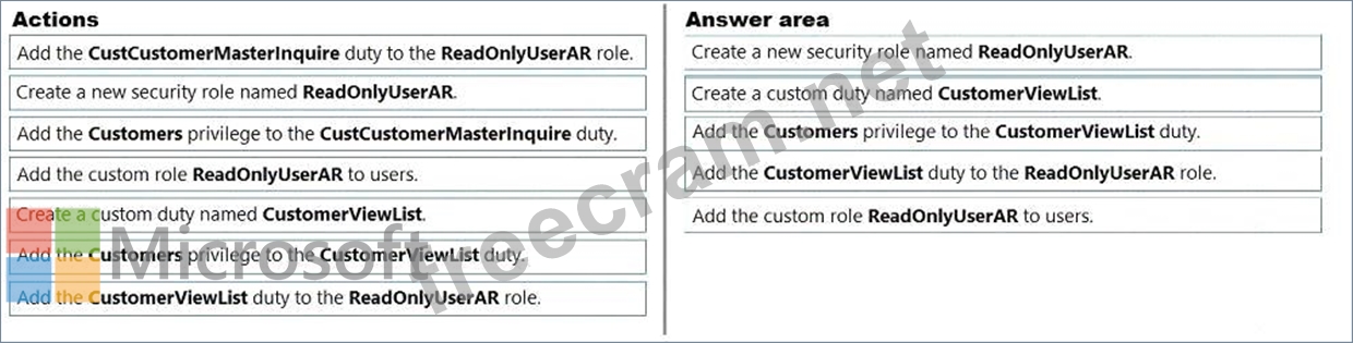 A client wants to create a custom view-only security role that allows users to view the customer list in the accounts receivable module. It must be accurately reported during a security audit.