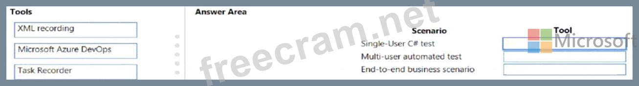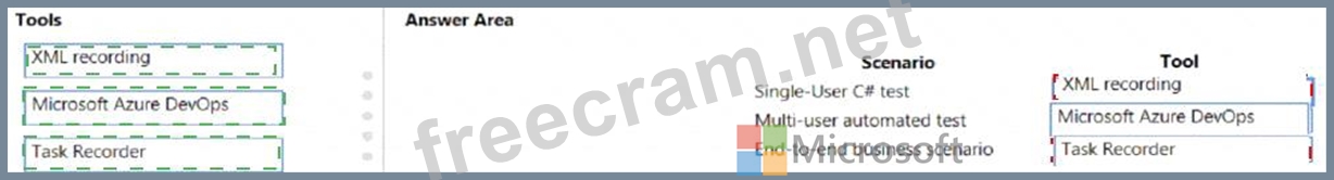 Which tool should you use? To answer, drag the appropriate tools to the correct scenarios. Each tool may be used once, more than once, or not at all. You may need to drag the split bar between panes or scroll to view content.