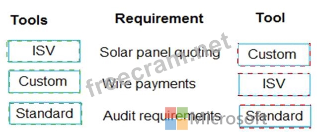 What should you recommend? To answer, drag the appropriate tools to the correct requirements. Each tool may be used once, more than once, or not at all. You may need to drag the split bar between panes or scroll to view content.