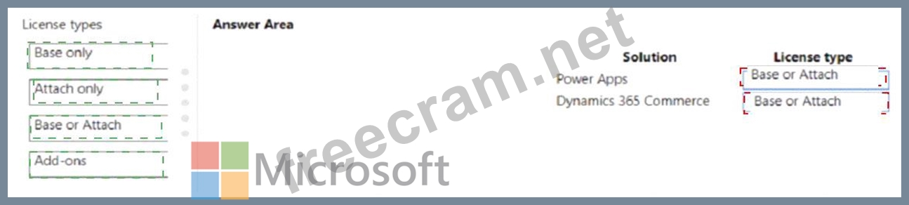 What should you select? To answer, drag the appropriate license types to the correct solutions. Each license type may be used once, more than once, or not at all. You may need to drag the split bar between panes or scroll to view content.