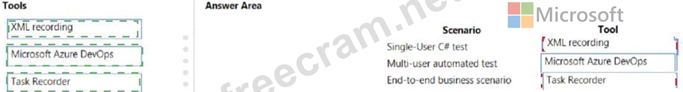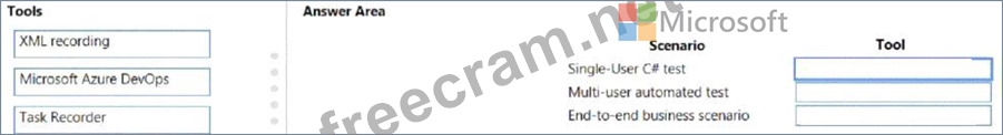 Which tool should you use? To answer, drag the appropriate tools to the correct scenarios. Each tool may be used once, more than once, or not at all. You may need to drag the split bar between panes or scroll to view content.