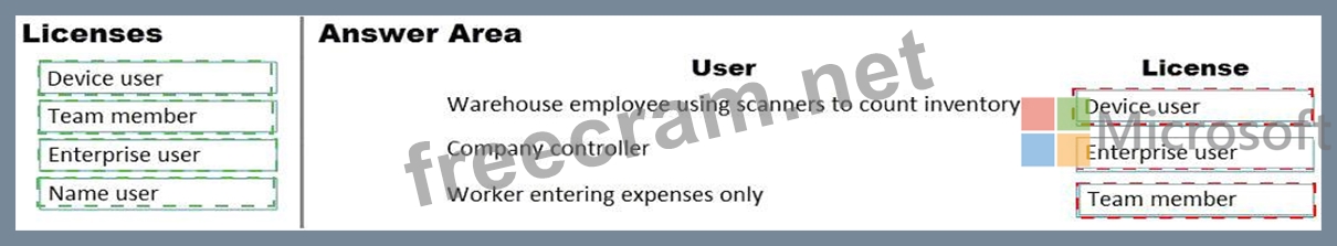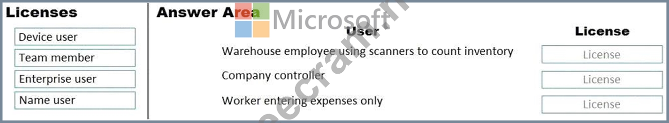 Question 6: You need to recommend which type of Dynamics 365 licenses ar...