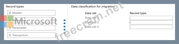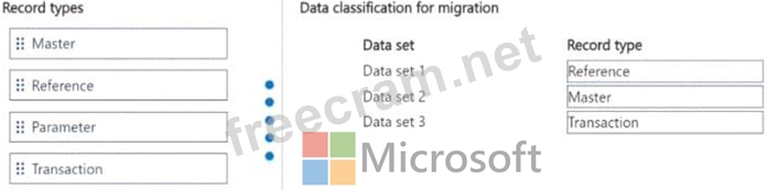 Which record type should you use for each data set? To answer, move the appropriate record type to the correct data set. You may use each record type once, more than once, or not at all. You may need to move the split bar between panes or scroll to view content.