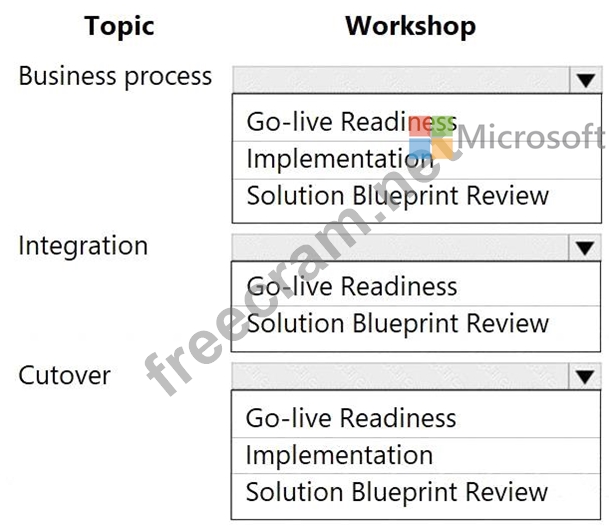 Which workshop is used for each topic? To answer, select the appropriate options in the answer area.