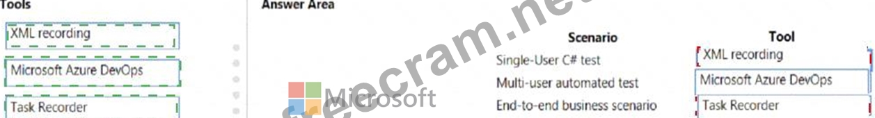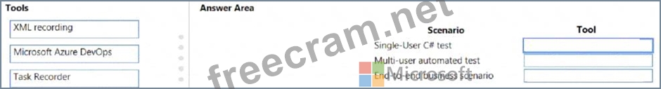 Which tool should you use? To answer, drag the appropriate tools to the correct scenarios. Each tool may be used once, more than once, or not at all. You may need to drag the split bar between panes or scroll to view content.