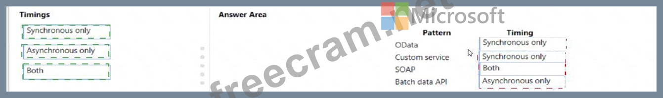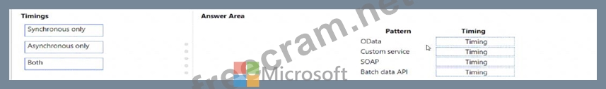 What should you recommend? To answer, drag the appropriate timings to the correct patterns. Each timing may be used once, more than once, or not at all. You may need to drag the split bar between panes or scroll to view content NOTE: Each correct selection is worth one point.
