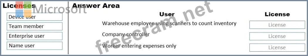 Question 6: You need to recommend which type of Dynamics 365 licenses ar...