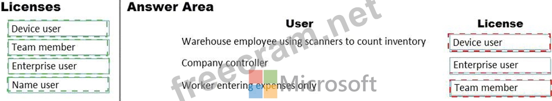 Which type of license should you recommend? To answer, drag the appropriate licenses to the correct users.