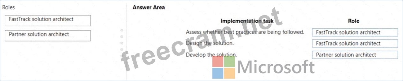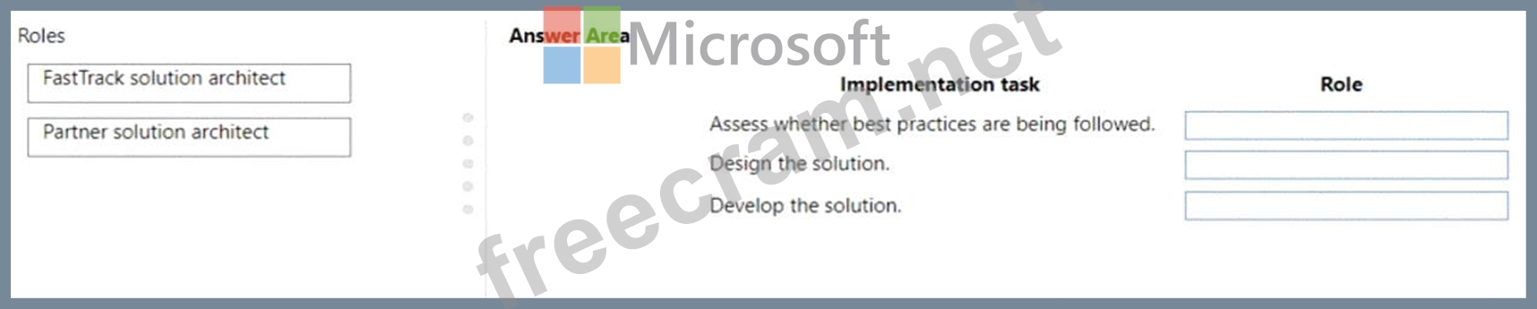 You need to determine which solution architect role is responsible for specific aspects of the implementation.