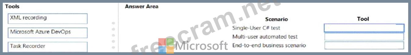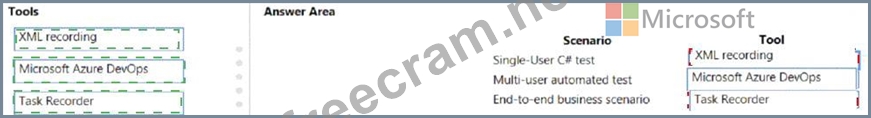 Which tool should you use? To answer, drag the appropriate tools to the correct scenarios. Each tool may be used once, more than once, or not at all. You may need to drag the split bar between panes or scroll to view content.