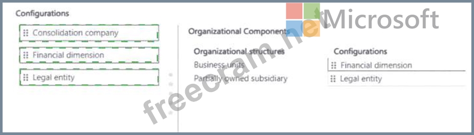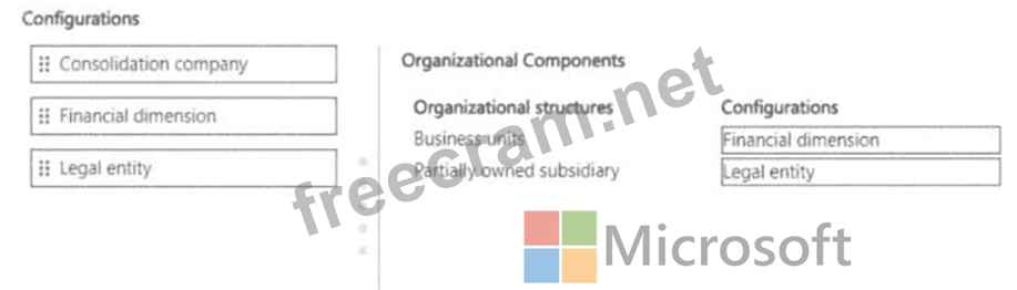 How should you configure the organizational structures? To answer, move the appropriate configurations to the correct organizational structures. You may use each configuration once, more than once, or not at all. You may need to drag the split bar between panes or scroll to view content.