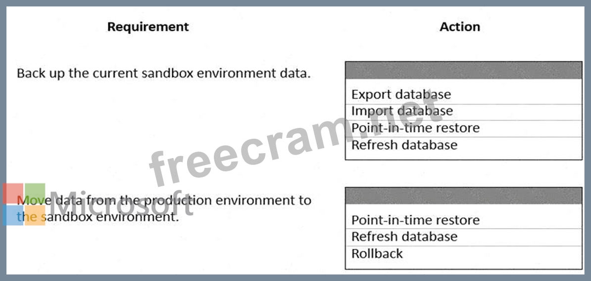 You can use Microsoft Dynamics Lifecycle Services (LCS) to perform a refresh of the database to a sandbox user acceptance testing (UAT) environment. A database refresh lets you copy the transactional and financial reporting databases of your production environment into the target, sandbox UAT environment. If you have another sandbox environment, you can also copy the databases from that environment to your target, sandbox UAT environment.