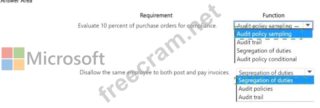 A customer implements Dynamics 365 Finance and Dynamics 365 Supply Chain Management The customer wants to use system functions to help prevent fraud.