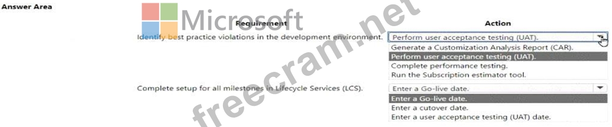 The project team should validate solution readiness. The following prerequisites must be met before the Go- live Readiness Review with Microsoft can be initiated. The production environment can be deployed after the Go-live Readiness Review with Microsoft has been successfully completed.