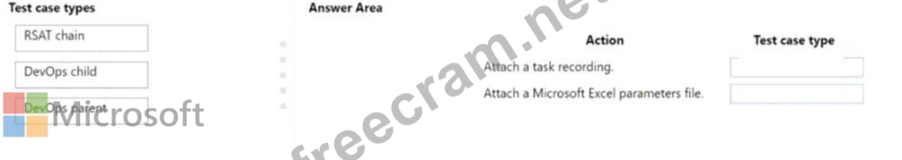Which test case type should you use? To answer, drag the appropriate test case types to the correct actions Each test case type may be used once, more than once, or not at all You may need to drag the split bar between panes or scroll to view content NOTE: Each correct selection is worth one point.