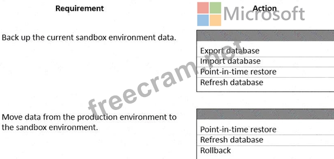 You can use Microsoft Dynamics Lifecycle Services (LCS) to perform a refresh of the database to a sandbox user acceptance testing (UAT) environment. A database refresh lets you copy the transactional and financial reporting databases of your production environment into the target, sandbox UAT environment. If you have another sandbox environment, you can also copy the databases from that environment to your target, sandbox UAT environment.