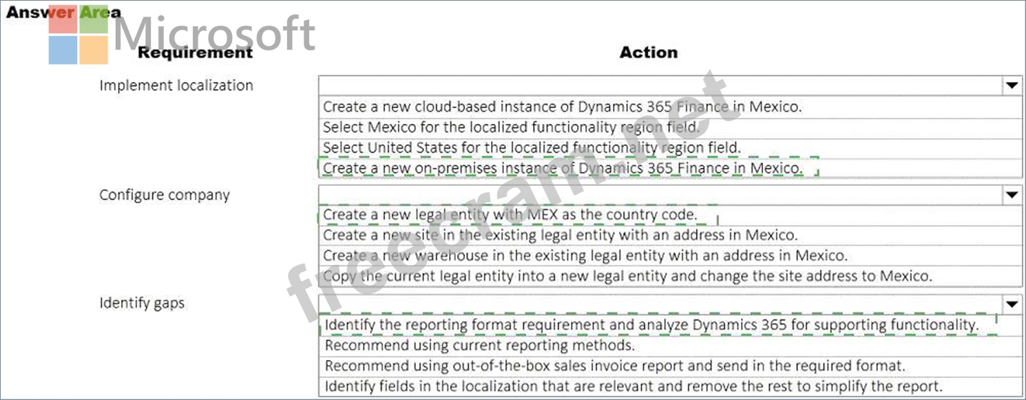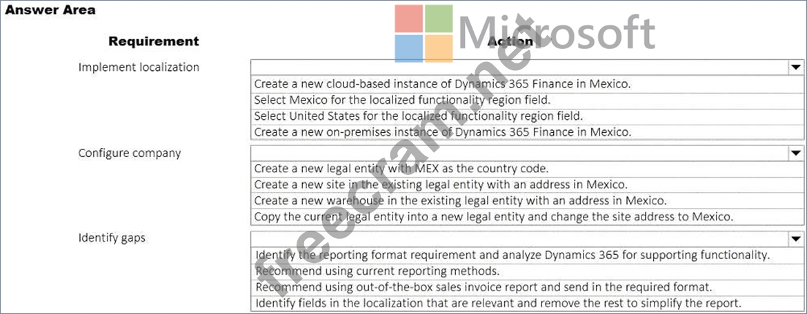 A United States-based company has a cloud-based Dynamics 365 Finance implementation. The company plans to open a new location in Mexico.