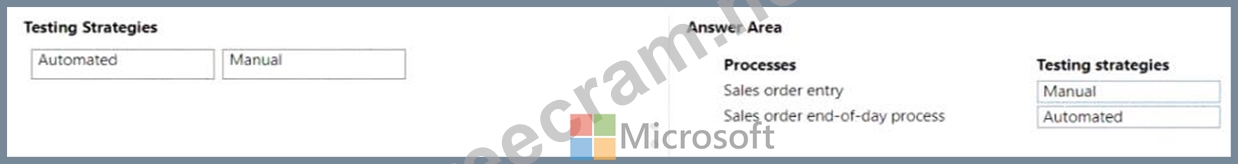Which testing strategies should you use? To answer, move the appropriate testing strategies to the correct processes. You may use each testing strategy once, more than once, or not at all. You may need to drag the split bar between panes or scroll to view content.