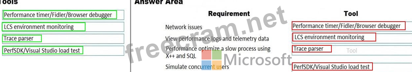 An organization uses Dynamics 365 Finance and Dynamics 365 Supply Chain Management. The organization is experiencing various performance issues and is looking for solutions. You need to recommend tools to determine the cause of the performance issues.