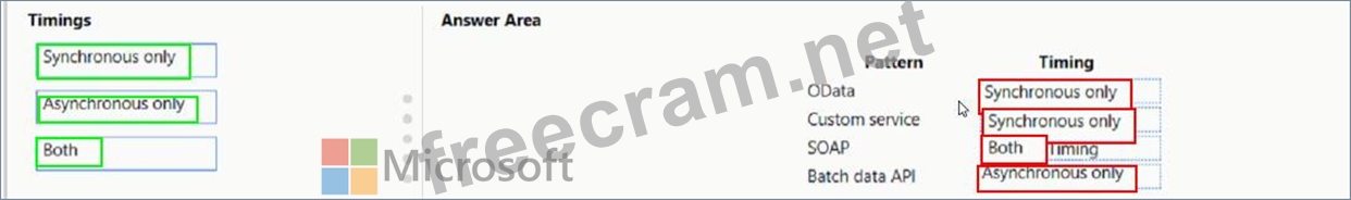 What should you recommend? To answer, drag the appropriate timings to the correct patterns. Each timing may be used once, more than once, or not at all. You may need to drag the split bar between panes or scroll to view content NOTE: Each correct selection is worth one point.