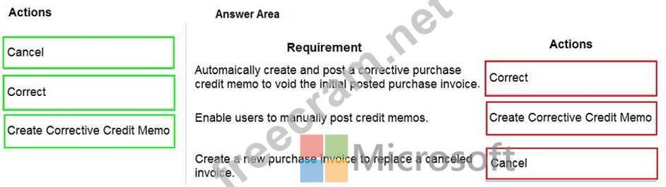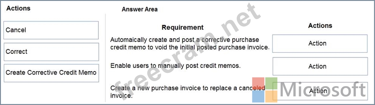 Which actions should you perform? To answer, drag the appropriate actions to the correct requirements. Each action may be used once, more than once, or not at all. You may need to drag the split bar between panes or scroll to view content.