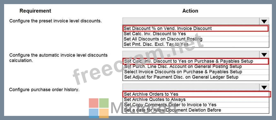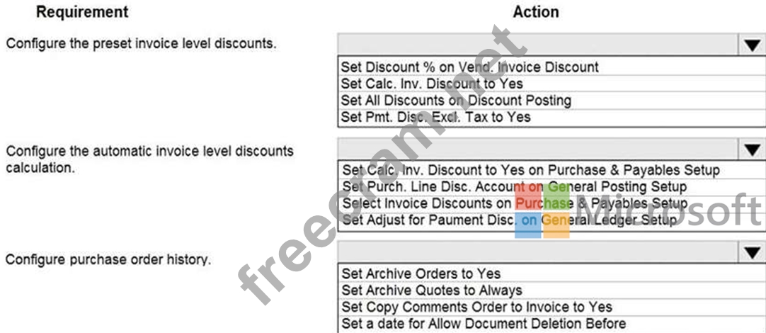 Question 100: You need to configure purchase order discounting and history...