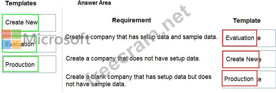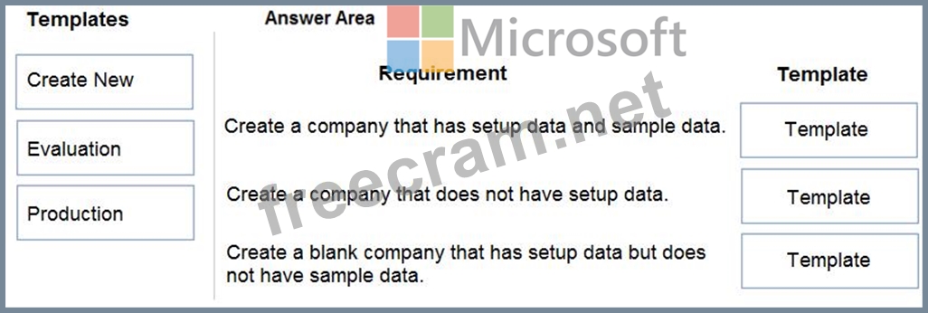Which templates should you use? To answer, drag the appropriate templates to the correct requirements. Each template may be used once, more than once, or not at all. You may need to drag the split bar between panes or scroll to view content.