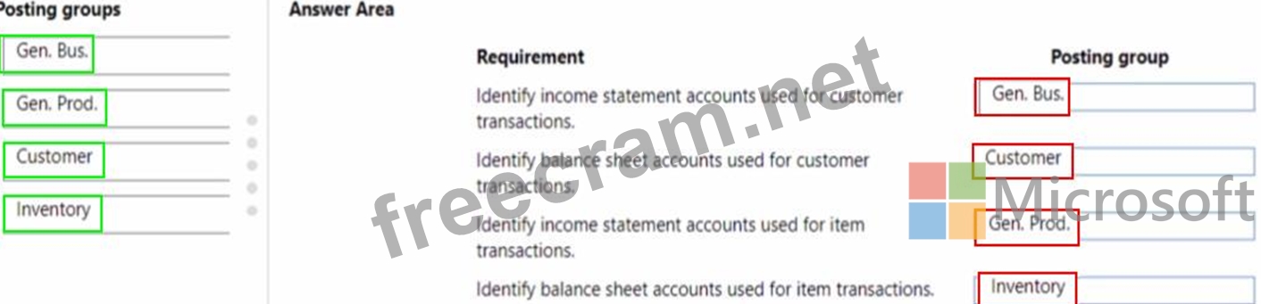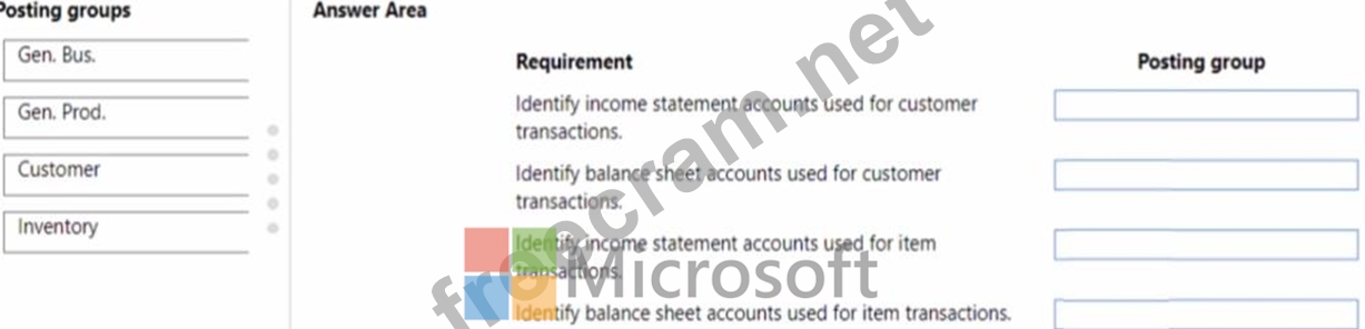 Which posting group should you use? To answer, drag the appropriate posting groups to the correct use cases. Each posting group may be used once, more than once, or not at all. You may need to drag the split bar between panes or scroll to view content.