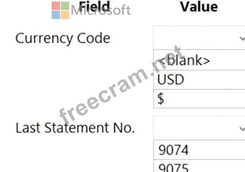 Question 77: A company uses Dynamics 365 Business Central. Which field is...