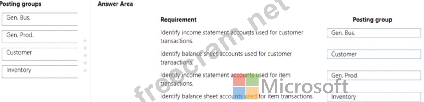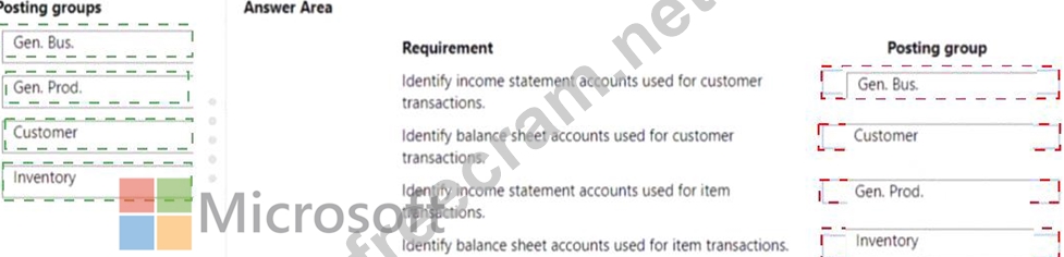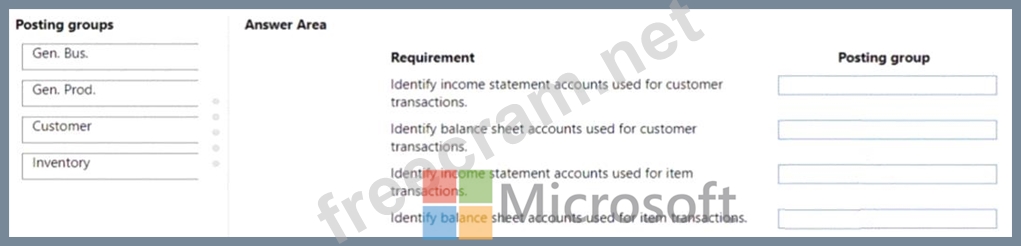 Which posting group should you use? To answer, drag the appropriate posting groups to the correct use cases.