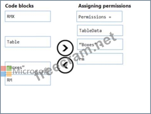 Which four code blocks should you use in sequence to assign the correct permission? To answer, move the appropriate code blocks from the list of code blocks to the answer area and arrange them in the correct order.