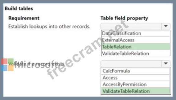 Which table field property should you use? To answer, select the appropriate options in the answer area.
