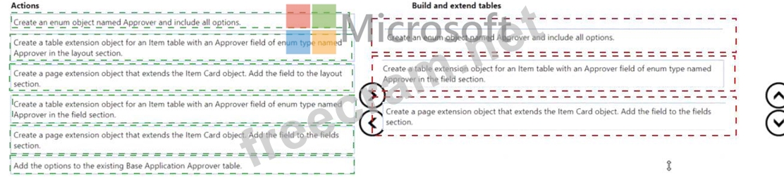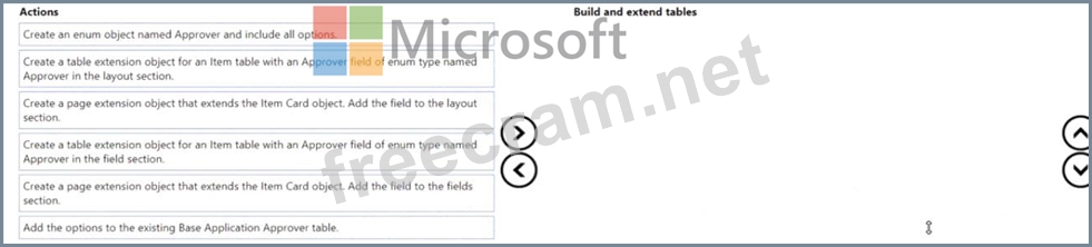 * Create a table extension object for an Item table with an Approver field of enum type named Approver in the fields section.