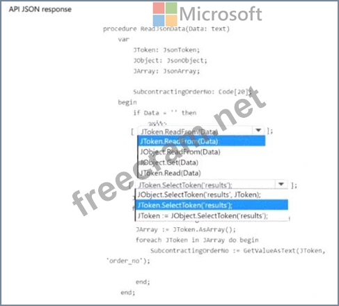 * The AL code is trying to read JSON data from a response and process it to extract subcontracting order numbers. It uses JsonToken, JsonObject, and JsonArray to work with the JSON data.