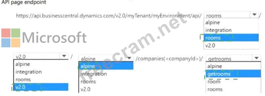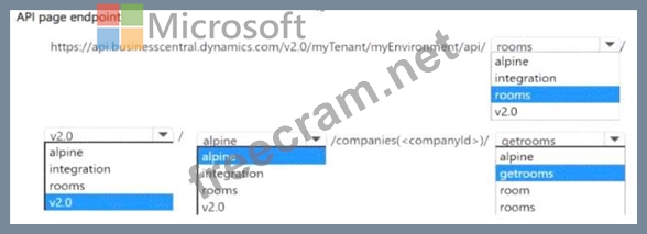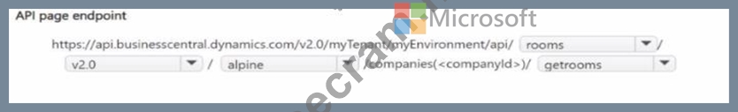 You need to provide the endpoint to the PMS provider for the RoomsAPI page. How should you complete the API page endpoint? To answer, select the appropriate options in the answer area. NOTE: Each correct selection is worth one point
