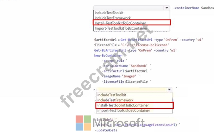 How should you complete the cmdlets? To answer, select the appropriate options in the answer area.