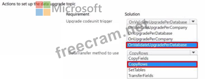 Question 17: You need to write an Upgrade codeunit and use the DataTransf...
