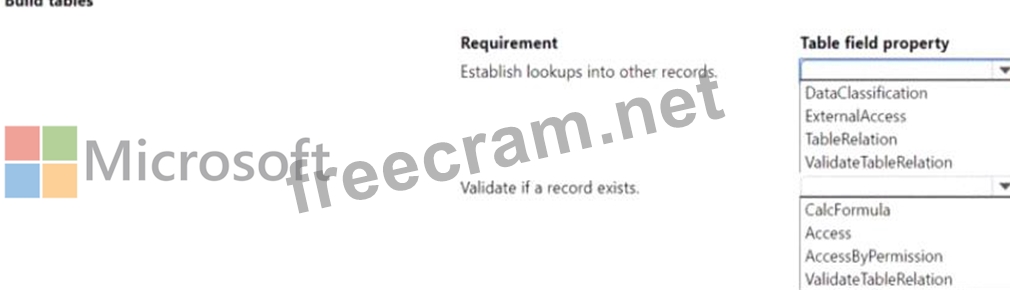 * TableRelation Property:This property is used to create a relationship between the field in one table and a field in another table, which is typically used for lookups. When you set the TableRelation property on a field, it allows users to select from a list of values that exist in the related table.