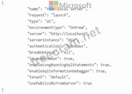 You are working on an on-premises Business Central instance and unable to download symbols for a new AL project. The current configuration in launch.json does not allow you to download symbols, and you need to make corrections. Key Points in the Scenario: Instance name is TEST. Developer services port is 7149. Windows authentication is being used. Correct Answers: A . Change the server Instance parameter to TEST. The serverInstance parameter must match the name of the Business Central instance, which is TEST in this scenario. You need to modify this to reflect the correct instance name. B . Add the port: 7149 parameter. Since the developer services are using port 7149, you need to specify this in the launch.json file by adding the port parameter with the value 7149. Incorrect Options: C . Change the name parameter to TEST: The name parameter is just a label and does not affect downloading symbols, so changing this won't help. D . Change the authentication parameter to UserPassword: The authentication method is already set to Windows, which is valid for this scenario. Changing it to UserPassword is unnecessary unless specified by the system. E . Check which server the instance is installed on and replace http://localhost with the correct IP address: Since the server is on the same machine as Visual Studio Code (as specified), localhost is correct.