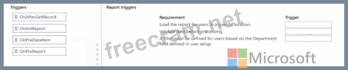 Which triggers should you use? To answer, move the appropriate triggers to the correct requirements. You may use each trigger once, more than once, or not at all. You may need to move the split bar between panes or scroll to view content.