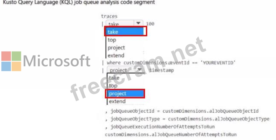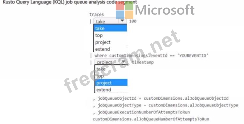 How should you complete the code segment? To answer, select the appropriate options in the answer area.