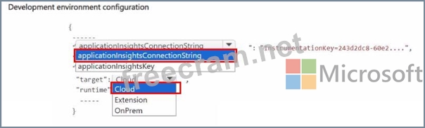 How should you complete the app.json file? To answer, select the appropriate options in the answer area.