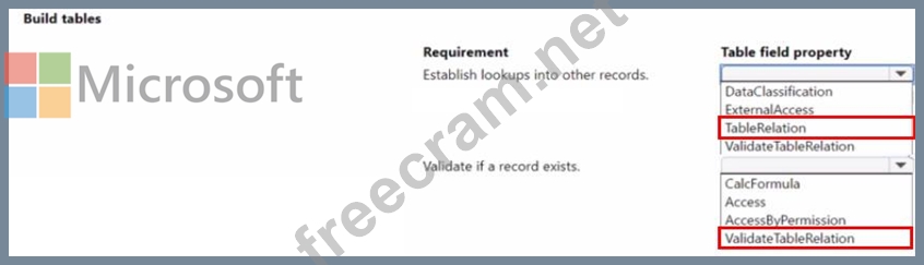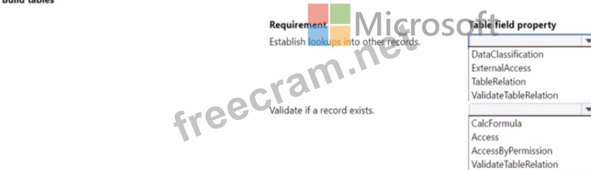 Which table field property should you use? To answer, select the appropriate options in the answer area.