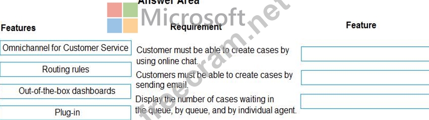 A company is implementing Dynamics 365 Customer Service. You need to recommend features that will meet the requirements.